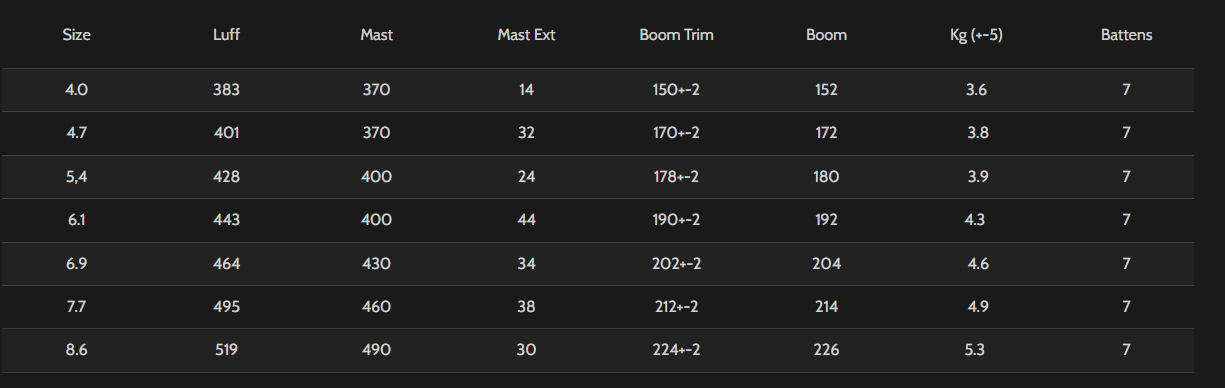 - 7 Tubular Battens – Total control, maximum acceleration.
