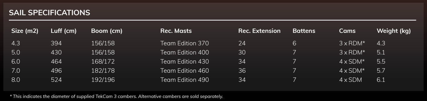At the center of the sail’s stability are the Skyblade’s carefully tuned carbon battens, which create a clean, light, locked-in profile with minimal drag. The new TekCam 3 camber system is 30% lighter and accommodates higher batten angles and ensures smooth, precise rotation. This reliable rotation is essential for maintaining focus during races and allows confident gybes and transitions without compromise.