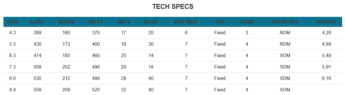 The slightly refined sizing in the larger sails – 8.0 and 7.3 – ensures seamless performance across the entire range, maintaining ideal balance and control no matter the wind conditions.